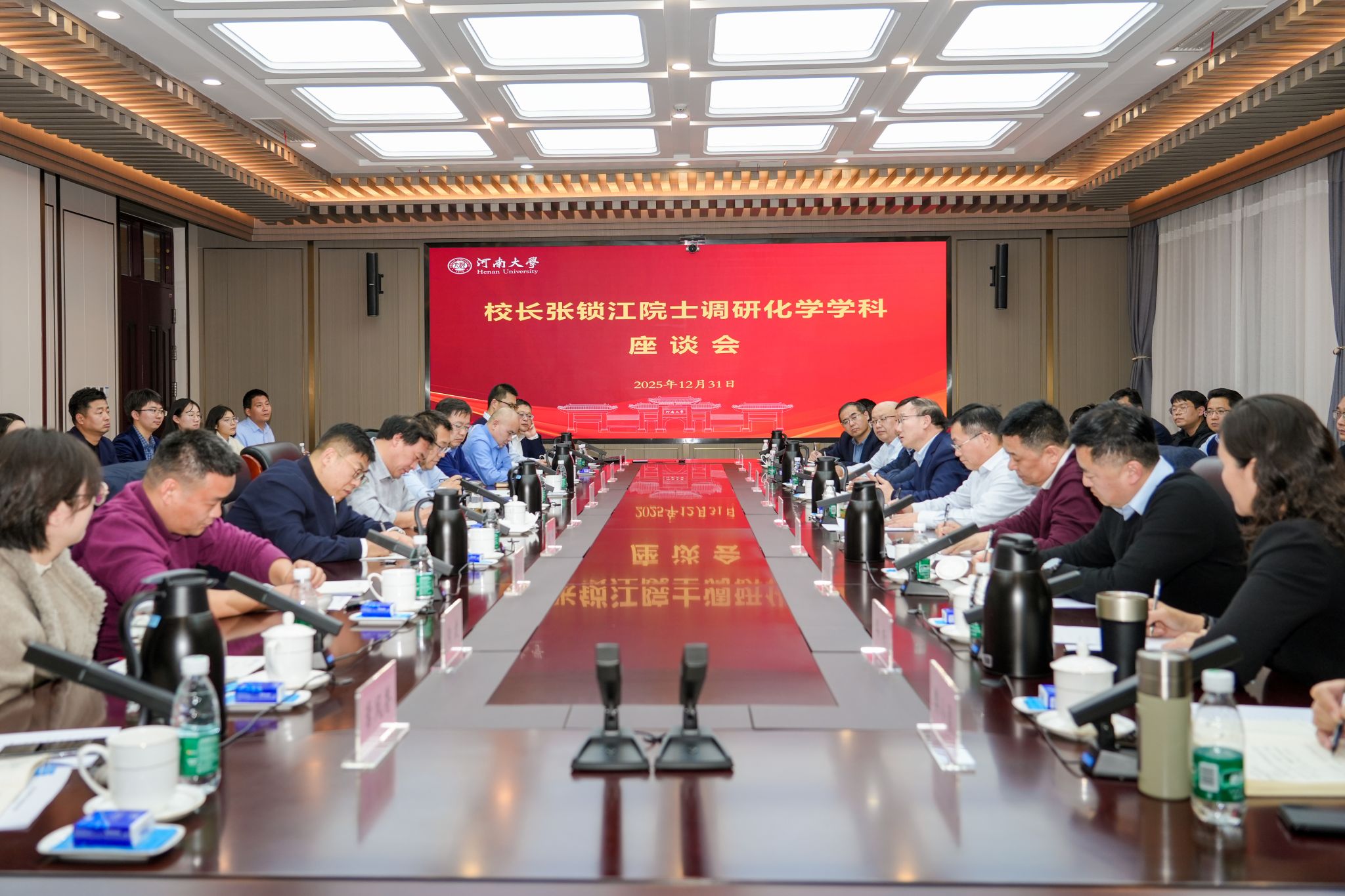 2025年12月31日,校长张锁江在郑州龙子湖校区专题调研化学学科建设发展情况。校党委副书记李平,副校长苗雨晨、乔梁、张礼刚、薛波,学术副校长陈雪波,相关职能部门负...