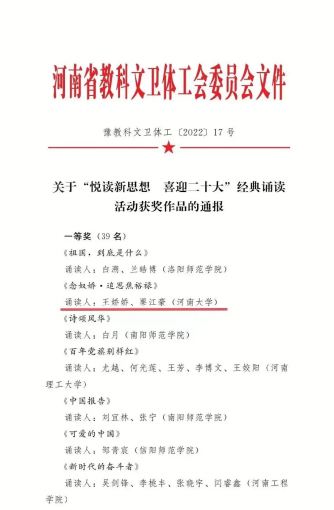 河南省教科文卫体工会职工经典诵读活动一等奖