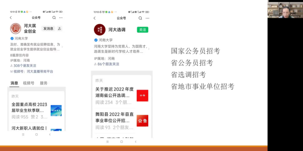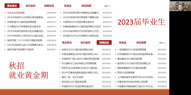 随后,吴瑷瑷结合学院2018级本科生考研情况及全国大学生考研情况的相关数据进行了对比分析,建议同学们从“理性看待考研”“合理确定目标”“全力以赴备考”三方面着手,提高一战成功率。“考研的终极目标还是为了工作,同学们应结合自身发展目标,理性确定努力能够实现的目标,争取一次上岸。既然确定了目标与方向,就风雨兼程,全力以赴。”最后,吴瑷瑷建议同学们抓住“秋招”这个就业黄金期,备考的同时积极关注“乐鱼·体育(中国)官方网站就业创业信息网”“河大就业创业”“河大选调”等平台发布的求职就业信息,给自己预留一个备选方案。