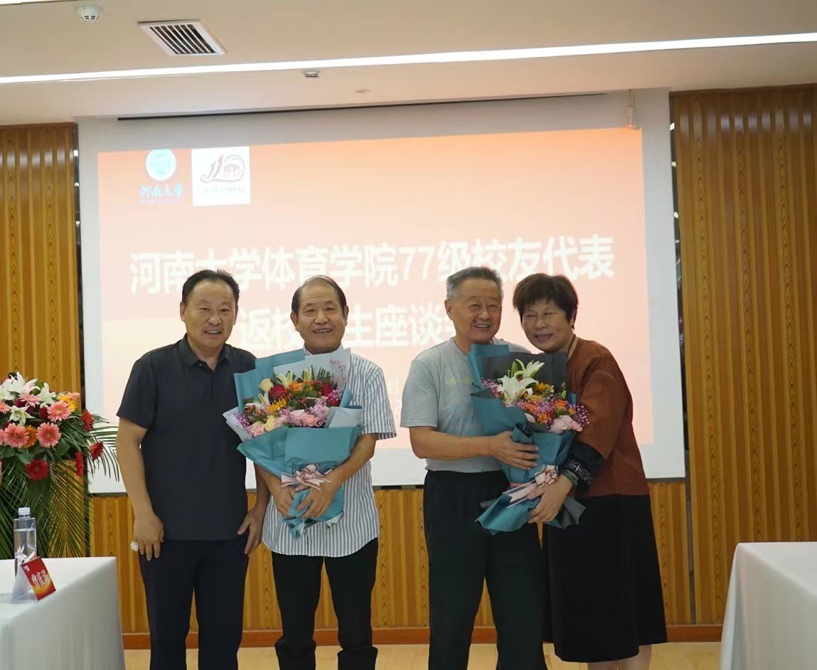 百十春秋,耕耘不辍育桃李芬芳;济济多士,薪火相传书河大华章。值乐鱼·体育(中国)官方网站110周年校庆来临之际,9月21日上午,体育学院举办了77级校友代表返校师生座谈会。体育学院老教师代表王崇喜、栗胜夫,77级校友代表郭蔚蔚、林克明、张跃敏、王小美、崔伟、丁英俊、杨钊,体育学院党政领导班子全体成员出席了座谈会。会议由体育学院副院长牛云杰主持。